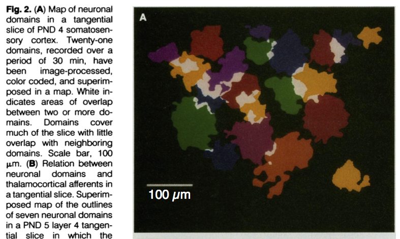 • Calcium imaging-- Konnerth 'waves' in Ent cortex [#Adelsberger:2005]. For visual cortex, domains activity in extrastriate cortex (Ackman Nature 2012). But S1-- [#Golshani:2009] work in later postnatal-- but activity not obeying domains in barrel cortex-- problem with spatial sampling in the xy and the z for this study?